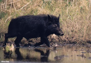 Yesterday, I watched a hog lie in a puddle of mud. She put her head under water and blew bubbles with her big snout. I saw a coyote trot through the trees hunting for small animals. I caught newly hatched turtles making their way from a nest in the grove to a water ditch.